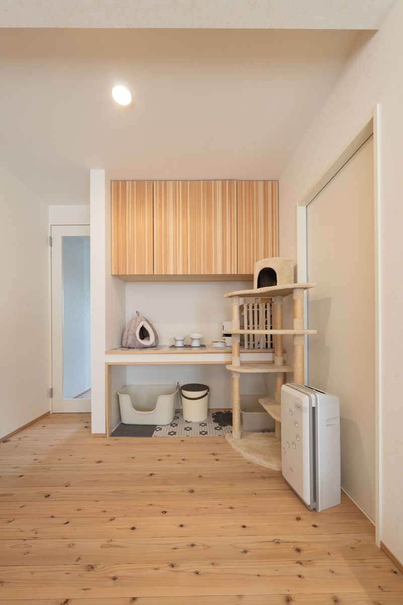 ワンコ、ニャンコと暮らす家には、愛情いっぱいの工夫が感じられます。