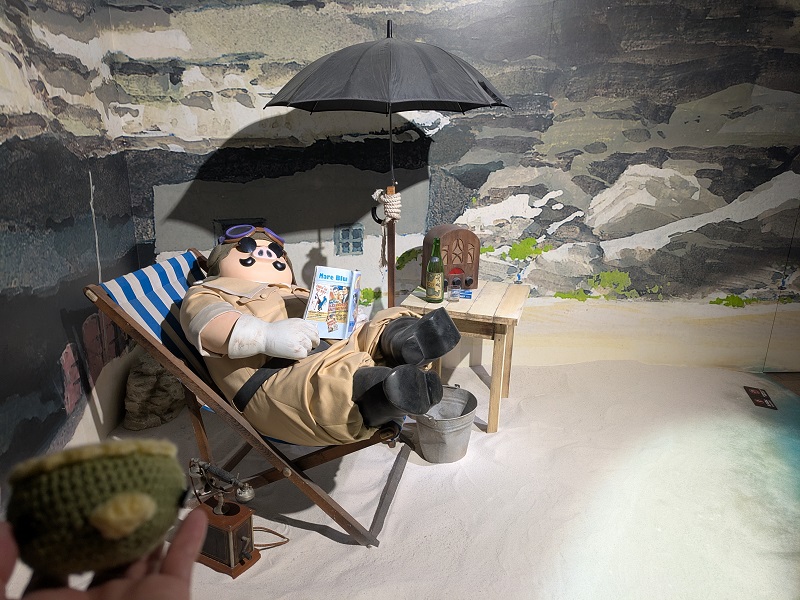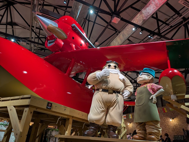 そして、今回の立体造形物展の一番の見どころが、紅の豚のポルコ・ロッソが修理を依頼したピッコロ社での飛行艇の造形物です。(山内さんのブログのサムネはお尻側の写真でしたね)