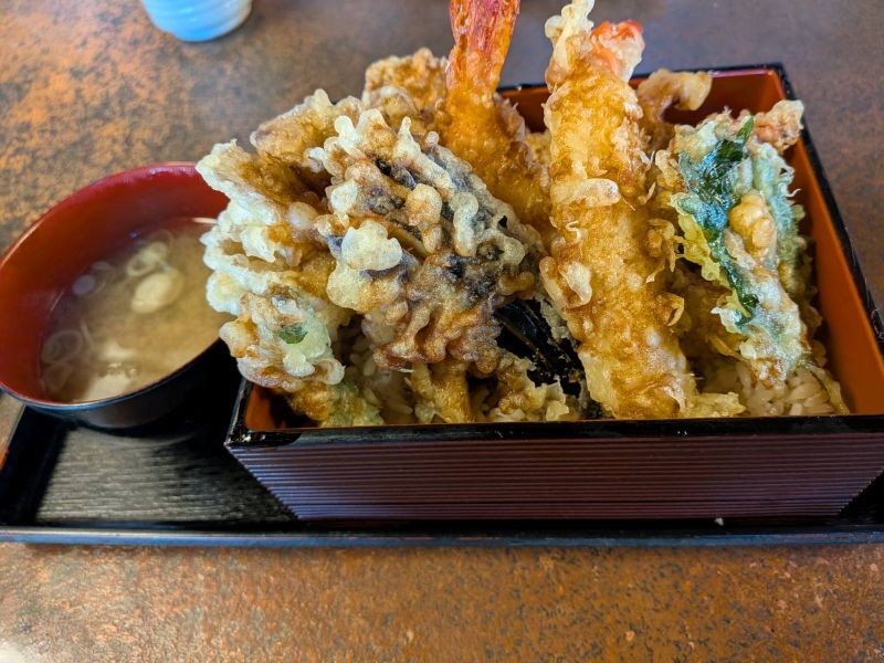 エビとマイタケが想像以上に大きく、衣はサクッと香ばしくてとても美味しかったです。