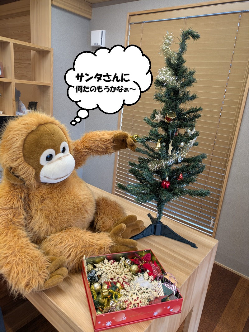 うーたんのところにもサンタさん来るかもって思って、急いで伊田しゃん、黒澤しゃんとクリスマスツリー飾ったんだ~