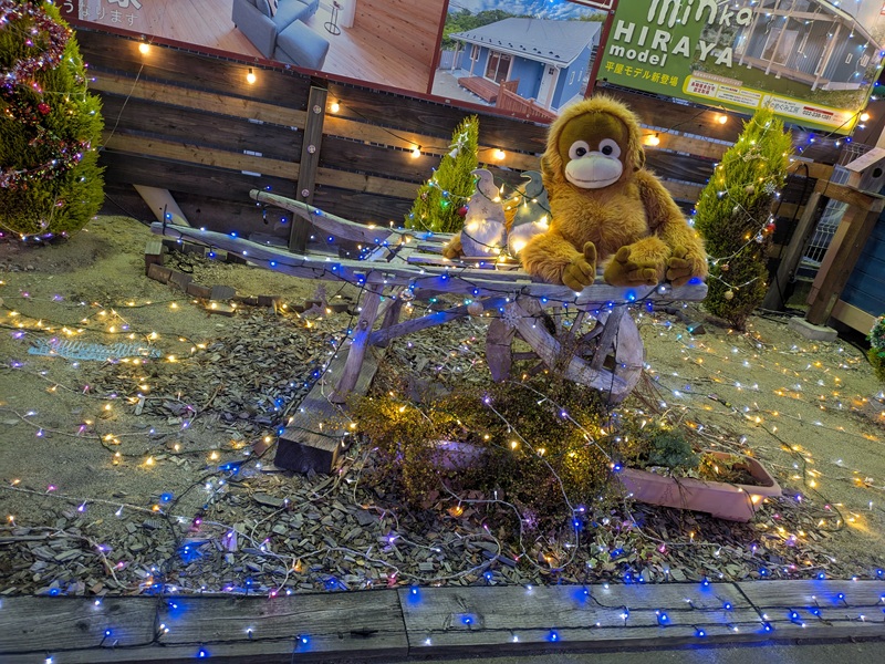 ガーデン(小屋)にも電気がついていつもと違っていて、中にもクリスマスっぽいのがあったりして電気屋さんなかなかやるね~って思たんだぁ~