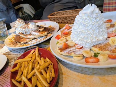妊婦たちに出産を頑張ってもらおうと 大きなパンケーキを食べにいきました♡