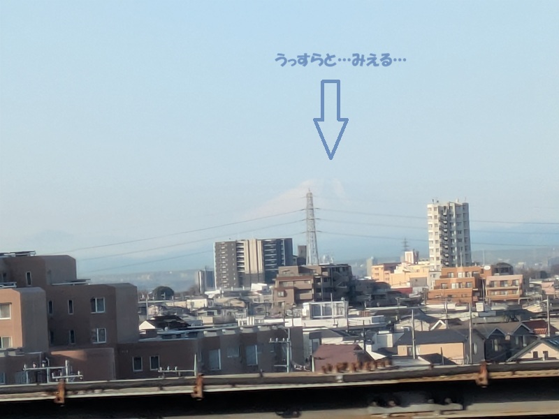 霞んでいますがうっすらと富士山を車窓から見れましたよ(良いことありそう)。