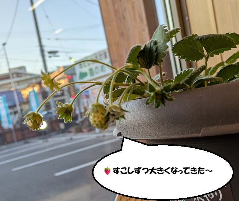いちご🍓も少しずつ大きくなってきて、熟したらうーたん食べるんだぁ~ いいでしょ~( *´艸`)
