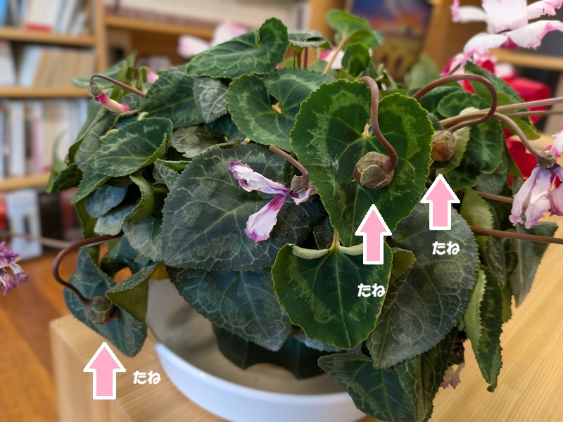 ドングリ??みたいなのがついていて… AIしゃんに聞いてみたら…なんと!シクラメンの種って教えてくれたよ。