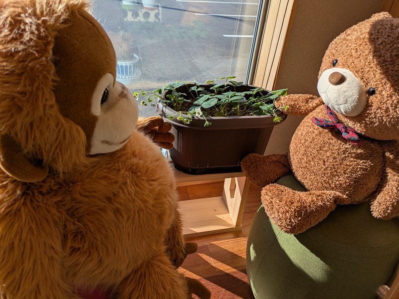 いちご🍓も少しずつ大きくなってきて、熟したらうーたん食べるんだぁ~ いいでしょ~( *´艸`)
