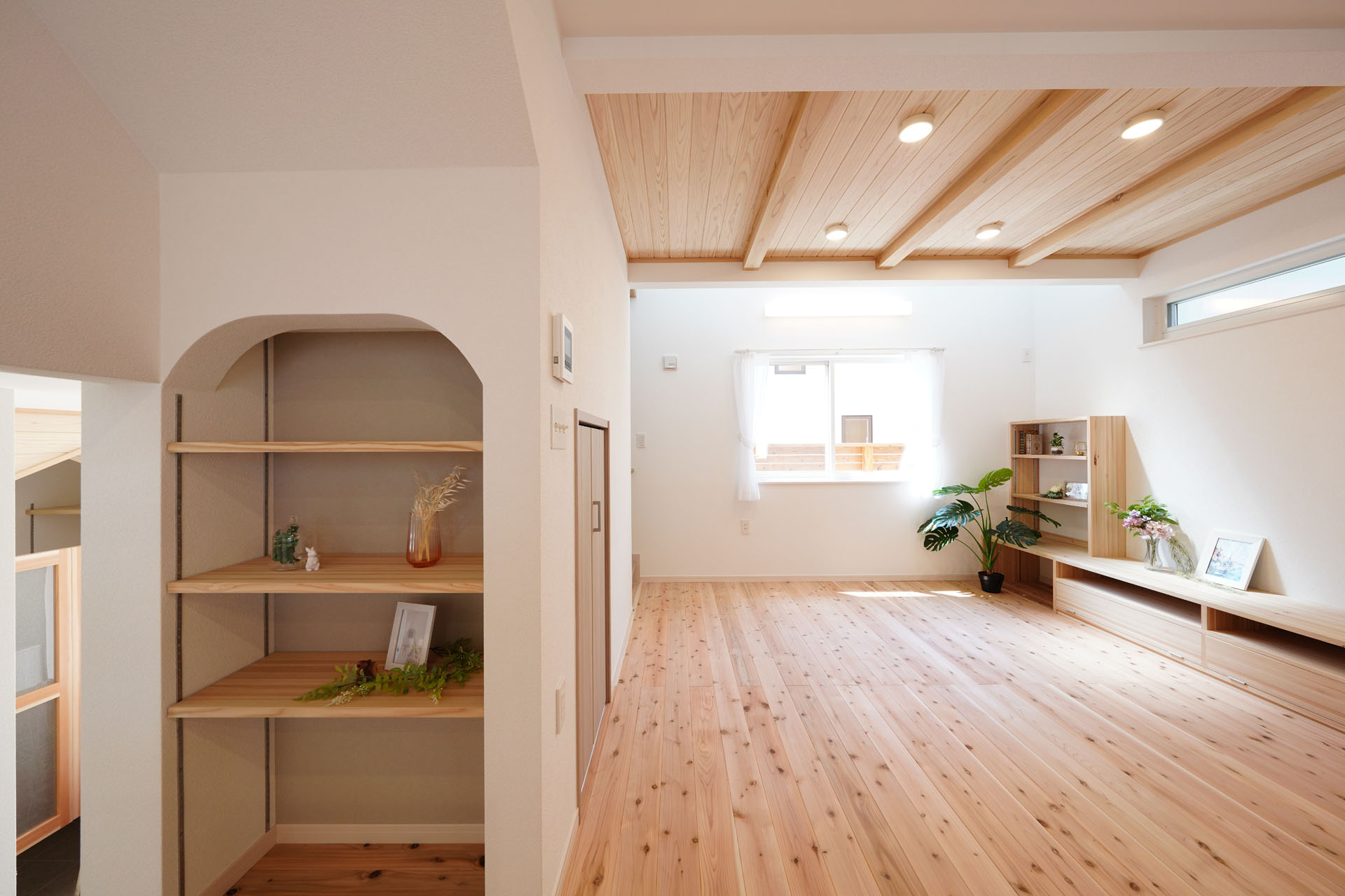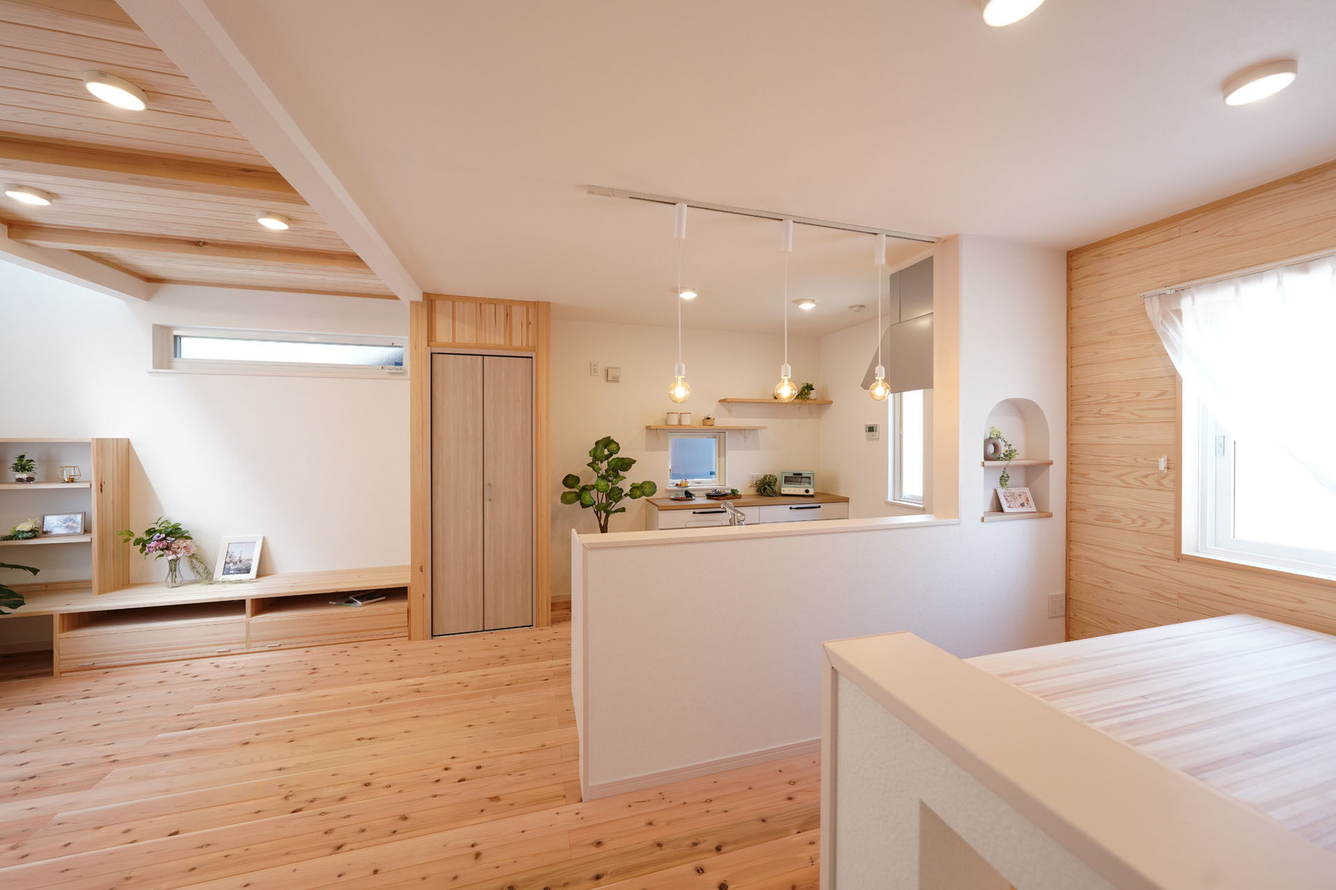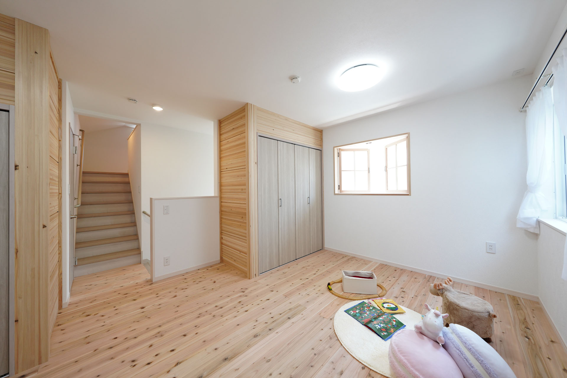 建物を構造体(スケルトン)と、内外装や間取り(インフィル)に分けて設計する工法です。杜の家オリジナル無垢杉材パーテーション「でき杉くん」で間取りが変わる!ライフスタイルが変わる!