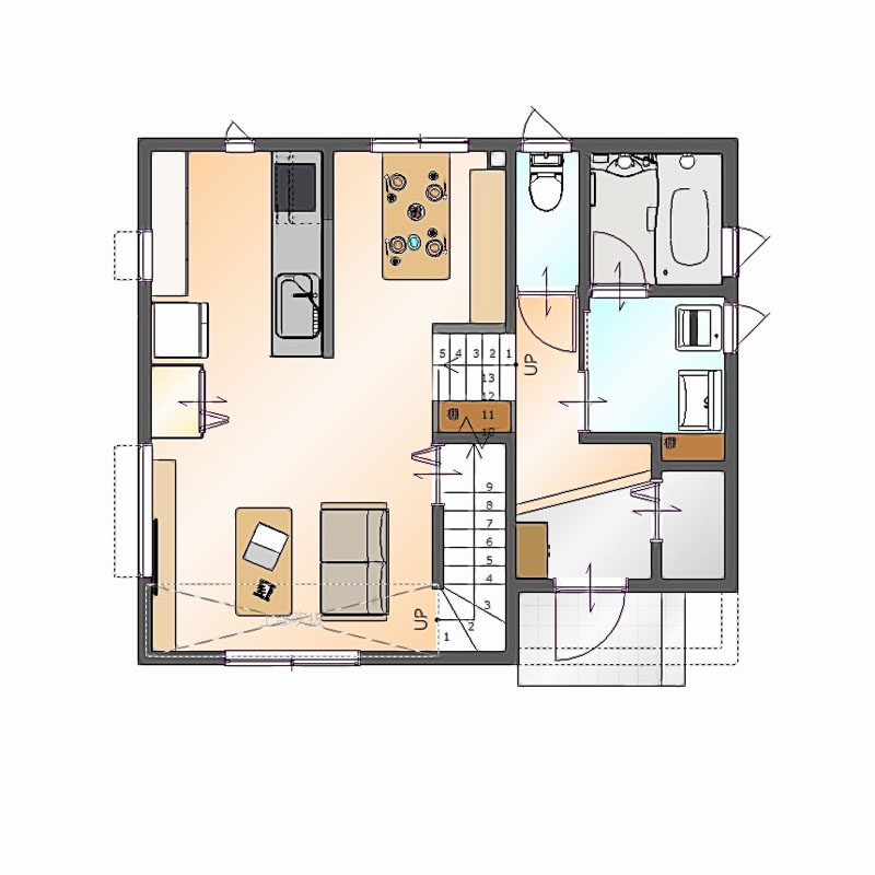 平屋、2世帯住宅、3階建住宅、又、狭小地や変形の土地に建てる住宅等の「杜の家」でご希望に添えない場合も「フリープラン」で設計いたします。