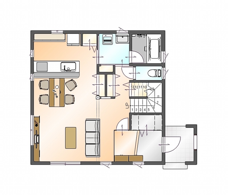 土地形状や接道の方位によって玄関や水まわりの位置、お部屋の広さを変えることができます。