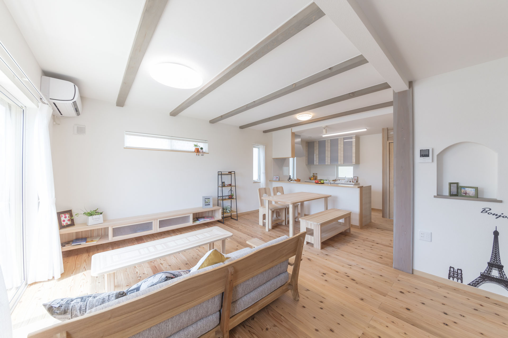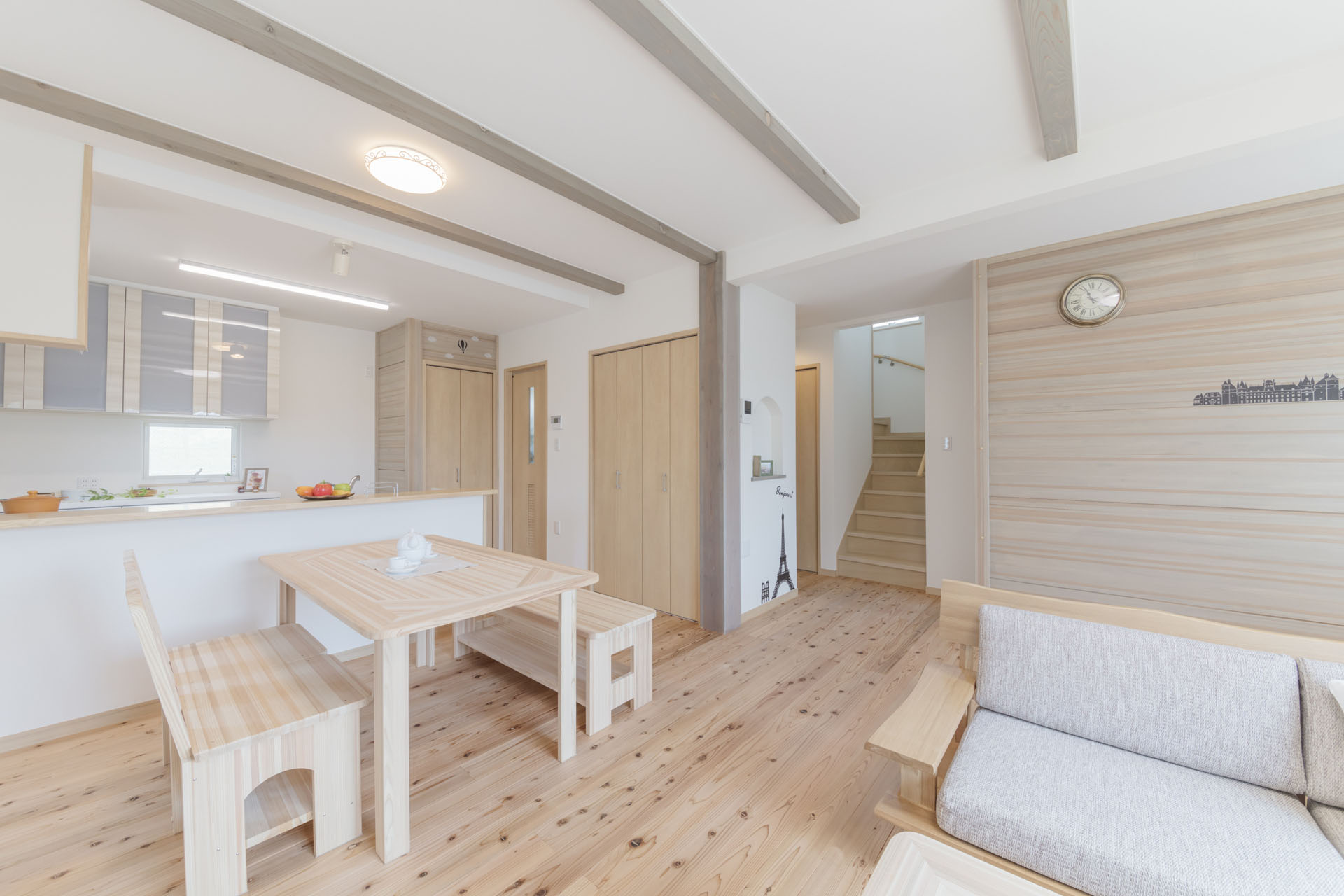 建物を構造体(スケルトン)と、内外装や間取り(インフィル)に分けて設計する工法です。杜の家オリジナル無垢杉材パーテーション「でき杉くん」で間取りが変わる!ライフスタイルが変わる!