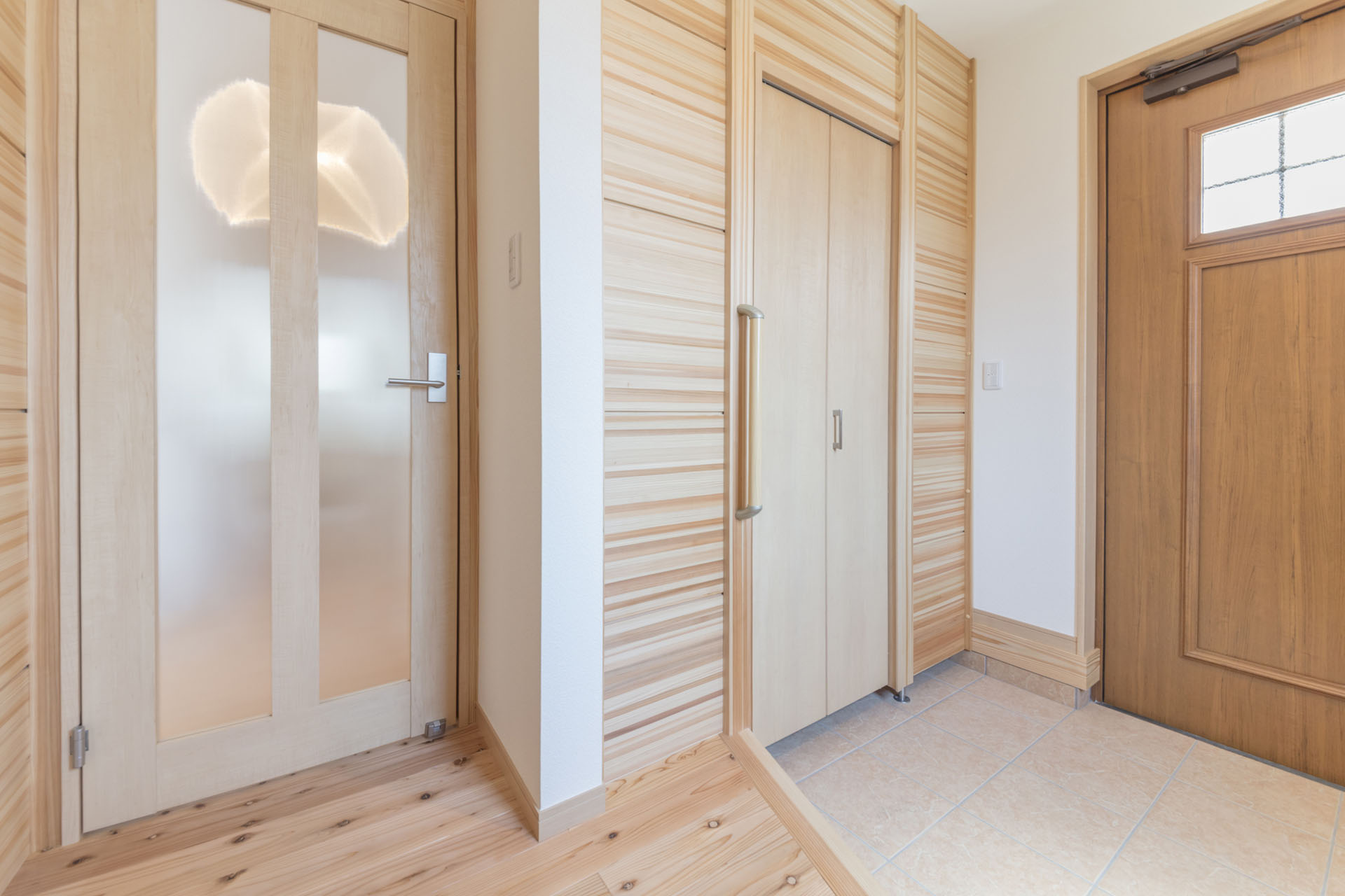 当社では自社グループで丸太の皮むきから製材、乾燥、加工までを一貫して行っています。輸送にかかる環境負荷や経済的付加といった生産コストを抑えながら、安心品質の木材を使用してお家づくりをしています。