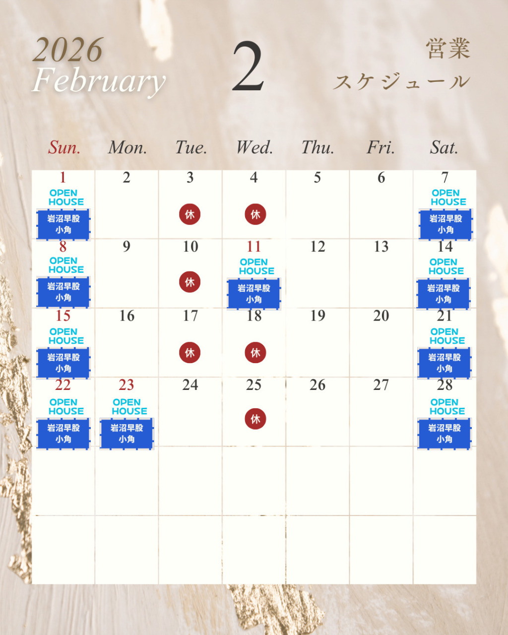2月の営業日・休業日・イベントカレンダーのお知らせ