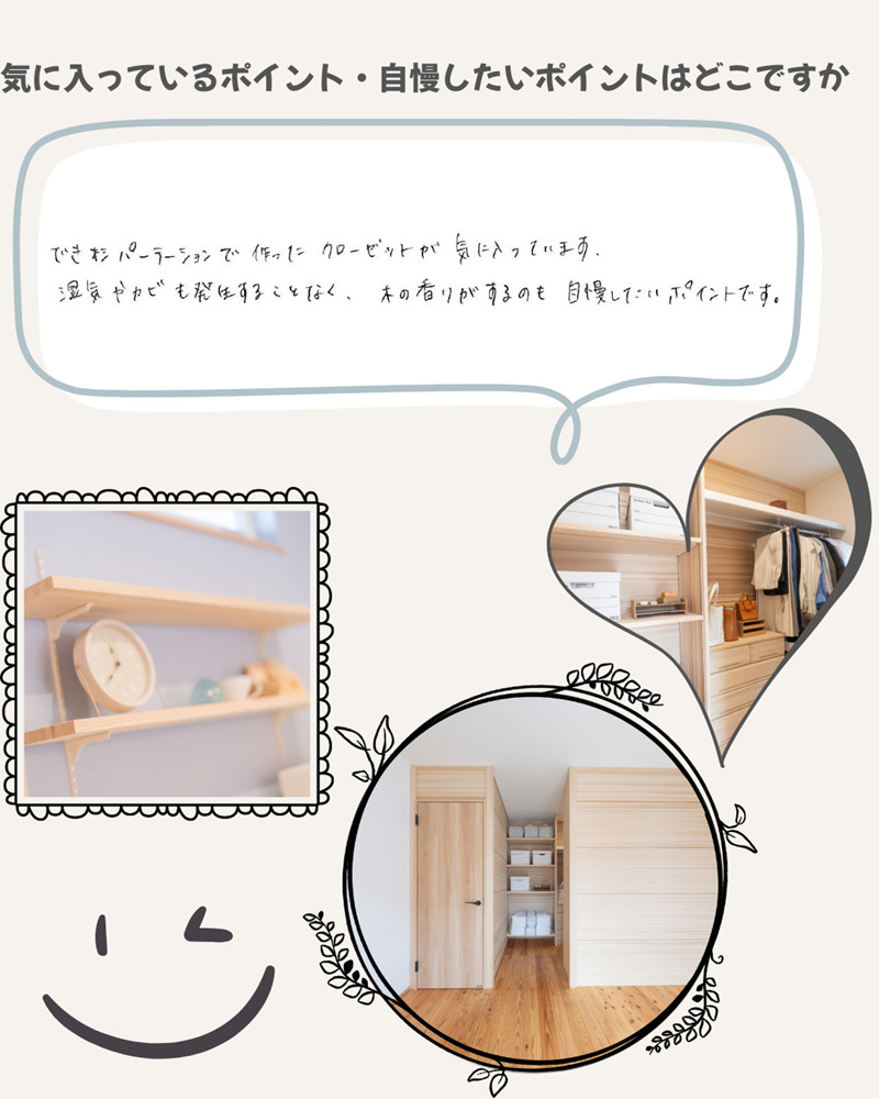 お客様の声 ホーム > お客様の声 毎日の何気ない時間が、いちばんの贅沢になる場所 次へ一覧前へ お知らせ&イベント情報 イベント情報2025.12.251/3・4・10・11・12 「新春内覧会 in 岩沼早股・小角」のご案内お知らせ2025.12.25年末年始のご挨拶 1/3・4 岩沼早股にて内覧会開催!スタッフブログ2025.12.29今年もありがとうございました。お知らせ2025.12.29~ネnoビレッジ DAN~ 新しいPROJECTが始まりますお知らせ2025.12.29新しい二世帯住宅の提案がはじまります 家づくりお役立ちコラム 一覧を見る 株式会社森のめぐみ工房