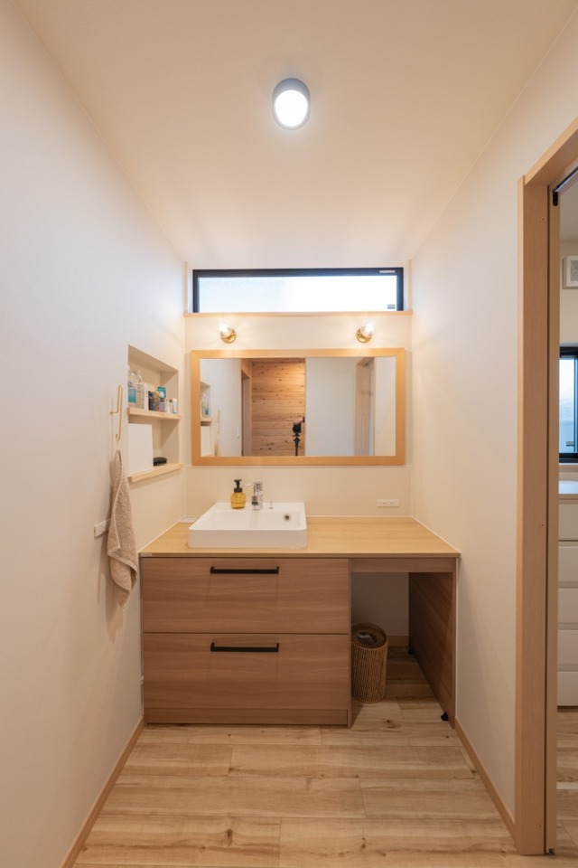 鏡やライトにこだわり、広く作った洗面室は特にお気に入りの空間!