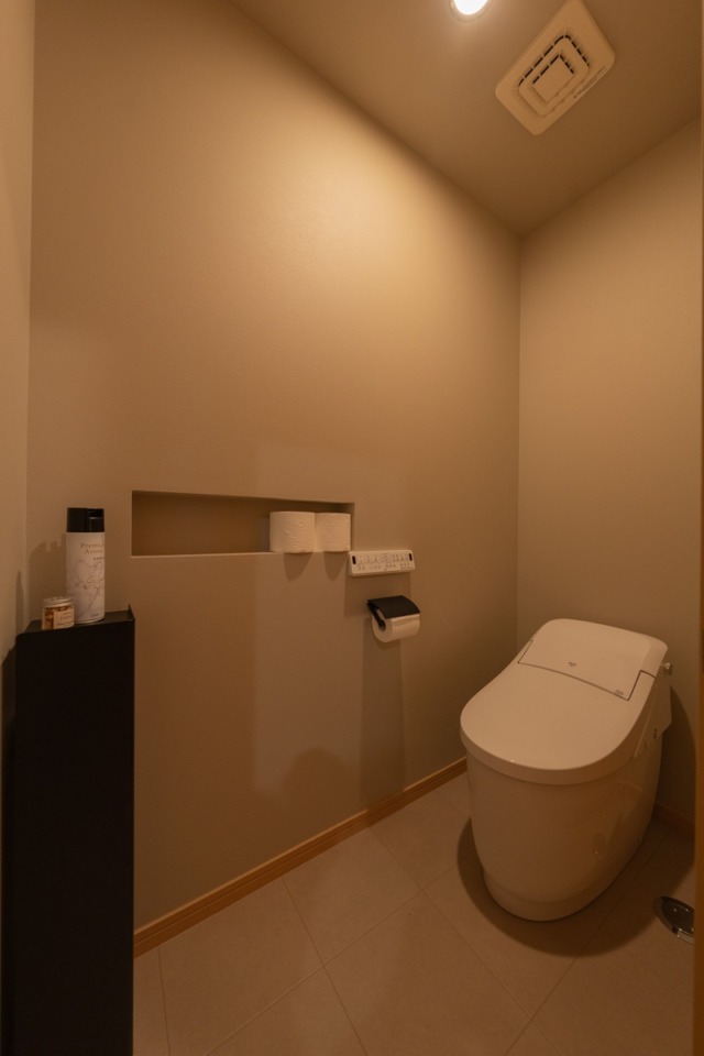 シンプルだからこそ、ニッチやペーパーホルダーといった素材が際立ちます。